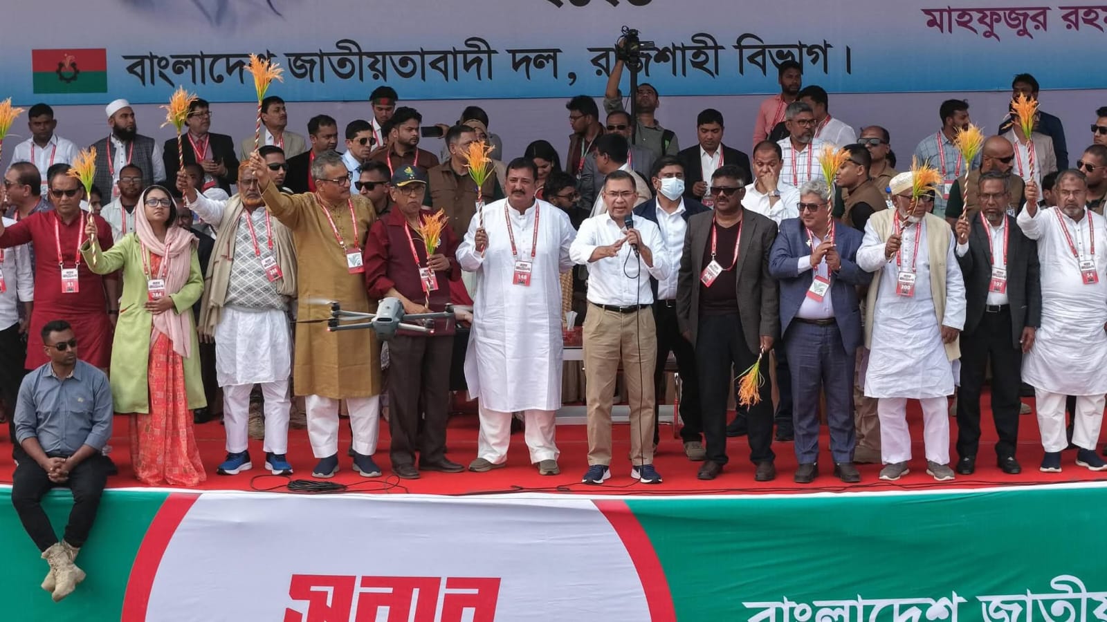 উপস্থিত নেতৃবৃন্দ জনসভায় তারেক রহমানের সহধর্মিণী ডা. জোবায়দা রহমান উপস্থিত ছিলেন। রাজশাহী মহানগর বিএনপির সভাপতি মামুনুর রশীদ মামুনের সভাপতিত্বে এবং সাধারণ সম্পাদক মাহফুজুর রহমান রিটনের সঞ্চালনায় জনসভায় আরও বক্তব্য রাখেন বিএনপি চেয়ারপারসনের উপদেষ্টা ও সাবেক মেয়র মিজানুর রহমান মিনু এবং সাংগঠনিক সম্পাদক সৈয়দ শাহীন শওকতসহ কেন্দ্রীয় ও স্থানীয় নেতৃবৃন্দ।