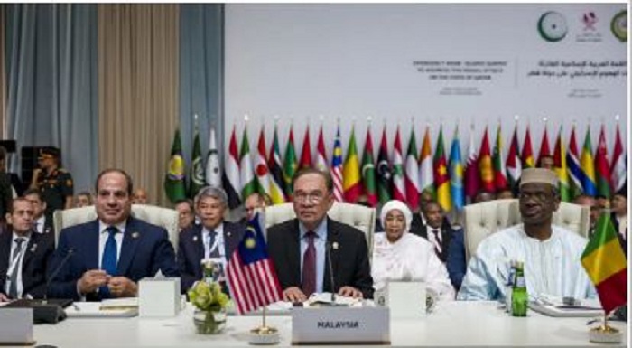 দখলদার ইসরায়েলের বিরুদ্ধে ব্যবস্থা নেওয়ার আহ্বান জানিয়েছেন মালয়েশিয়ার প্রধানমন্ত্রী দাতুক সেরি আনোয়ার ইব্রাহিম। তিনি দোহায় অনুষ্ঠিত আরব-ইসলামিক জরুরি সম্মেলনে বলেছেন, গাজায় পুনরায় আক্রমণ বন্ধ করতে বিশ্বকে ইসরায়েলের সঙ্গে কূটনৈতিক এবং বাণিজ্যিক সম্পর্ক বিচ্ছিন্ন করে চাপ সৃষ্টি করতে হবে।