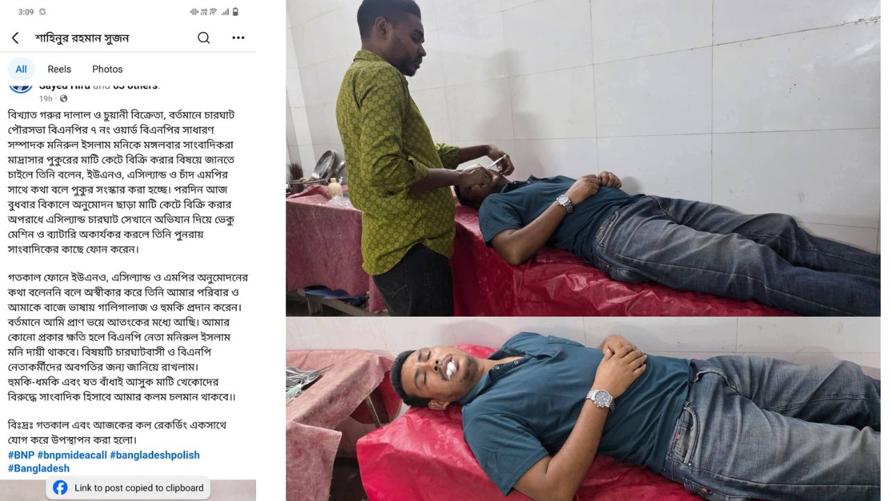 স্থানীয় সূত্রে জানা যায়, ভায়ালক্ষীপুর এলাকার একটি মাদ্রাসার জমিতে অবৈধভাবে পুকুর খনন ও মাটি বিক্রির বিষয়ে সম্প্রতি একটি সংবাদ প্রকাশ করেন ওই সাংবাদিক। এর পর থেকেই তাকে হুমকি দেওয়া হচ্ছিল বলে অভিযোগ।