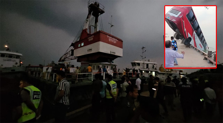 রাজবাড়ীর দৌলতদিয়া ঘাটে ফেরিতে ওঠার সময় নিয়ন্ত্রণ হারিয়ে পদ্মা নদীতে পড়ে ডুবে যাওয়া যাত্রীবাহী বাসটিকে টেনে তোলার চেষ্টা করা করা হচ্ছে। কিন্তু এখনো বাসটি দৃশ্যমান হয়নি। দুর্ঘটনার পর সেখানে ঝড়বৃষ্টির কারণে উদ্ধার কার্যক্রমও কিছুটা ব্যাহত হচ্ছে। বুধবার (২৫ মার্চ) রাতে ফায়ার সার্ভিসের মিডিয়া সেলের ভারপ্রাপ্ত কর্মকর্তা শাহজাহান শিকদার এ তথ্য জানিয়েছেন।