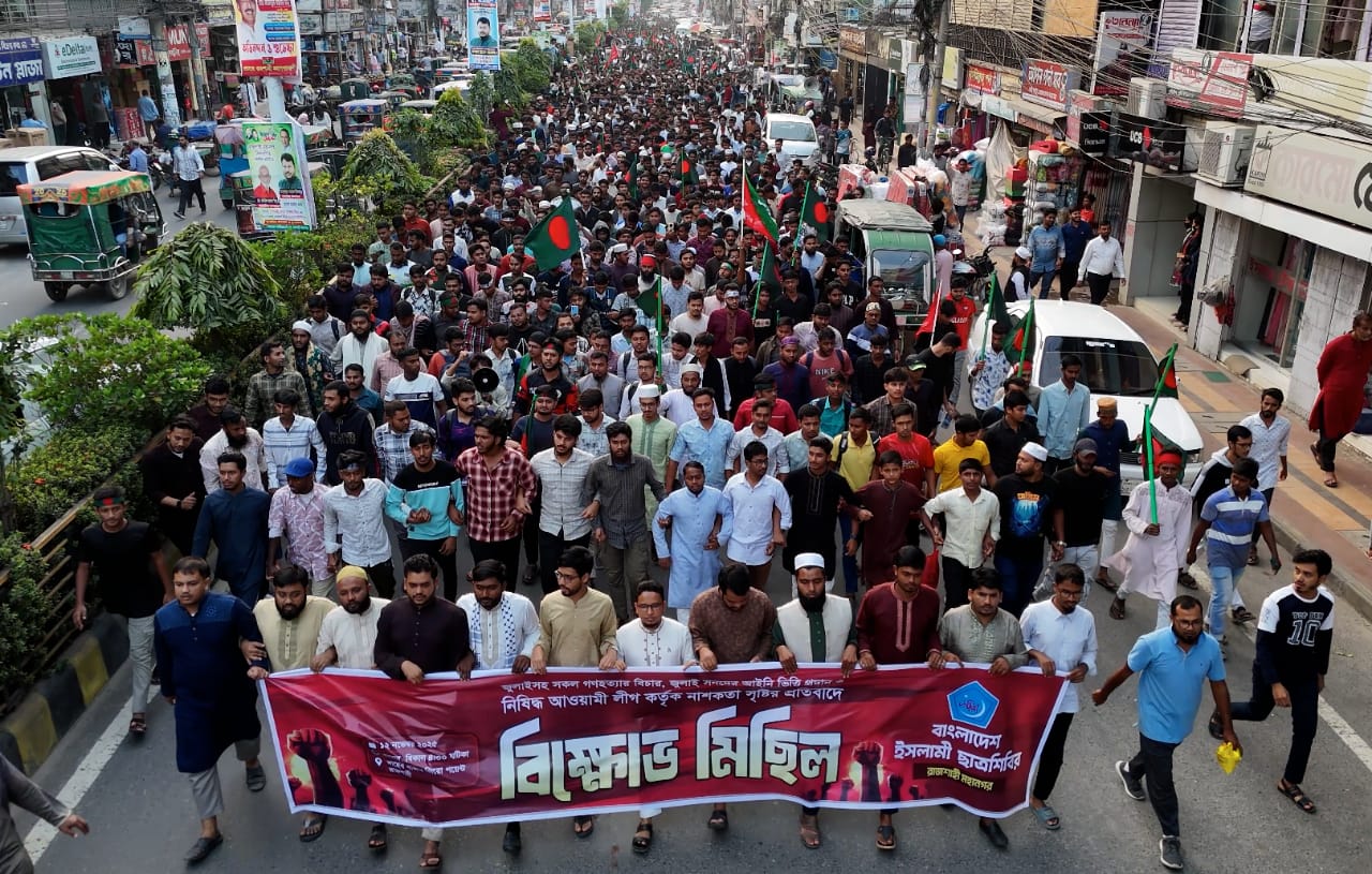বুধবার (১২ নভেম্বর) বিকাল ৪টা থেকে সাহেব বাজার জিরো পয়েন্টে বাংলাদেশ ইসলামী ছাত্রশিবির রাজশাহী মহানগরের উদ্যোগে “জুলাইসহ সকল গণহত্যার বিচার, জুলাই সনদের আইনি ভিত্তি প্রদান এবং নিষিদ্ধ আওয়ামী লীগ কর্তৃক নাশকতা সৃষ্টির প্রতিবাদে”একটি বিক্ষোভ মিছিলে প্রধান অতিথি হিসেবে উপস্থিত ছিলেন বাংলাদেশ ইসলামী ছাত্রশিবির কেন্দ্রীয় ফাউন্ডেশন সম্পাদক আসাদুজ্জামান ভূঁইয়া।