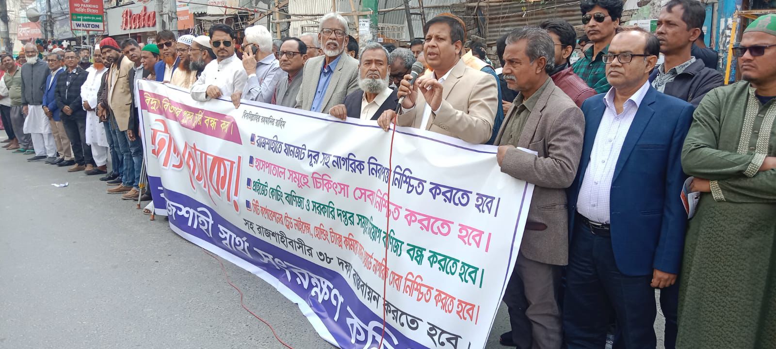 মানববন্ধনে বক্তারা বলেন, রাজশাহীর মানুষ শান্তিপ্রিয় হলেও বর্তমান পরিস্থিতিতে সর্বক্ষেত্রে দুর্নীতি ও অরাজকতা ভয়াবহ রূপ নিয়েছে। নেসকোর প্রিপেইড মিটারের অস্বাভাবিক ও ‘গলাকাটা’ বিল সাধারণ মানুষের জীবনে চরম দুর্ভোগ ডেকে এনেছে। বিদ্যুৎ বিভাগের অনিয়ম-দুর্নীতি বন্ধ না হলে কঠোর আন্দোলনের হুঁশিয়ারি দেন তারা।