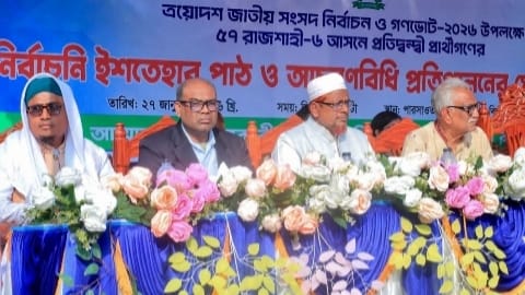 ত্রয়োদশ জাতীয় সংসদ নির্বাচ ও গণভোট – ২০২৬ উপলক্ষে ৫৭ রাজশাহী-৬ আসনে প্রতিদ্বন্দী প্রার্থীগণের নির্বাচনী ইশতেহার পাঠ ও আচরণবিধি প্রতিপালনের ঘোঘণা অনুষ্ঠান অনুষ্ঠিত হয়েছে। মঙ্গলবার (২৭ জানুয়ারি) বেলা ৩টায় বাঘা–চারঘাট উপজেলা প্রশাসনের আয়োজনে বাঘা উপজেলার পারসাওতা বিনোদপুর উচ্চ বিদ্যালয় মাঠে ‘এক মঞ্চে সব প্রার্থীর উপস্থিতিতে নির্বাচনী ইশতেহার পাঠ ও আচরণবিধি প্রতিপালনের ঘোষণা’ শীর্ষক অনুষ্ঠানের আয়োজন করা হয়।