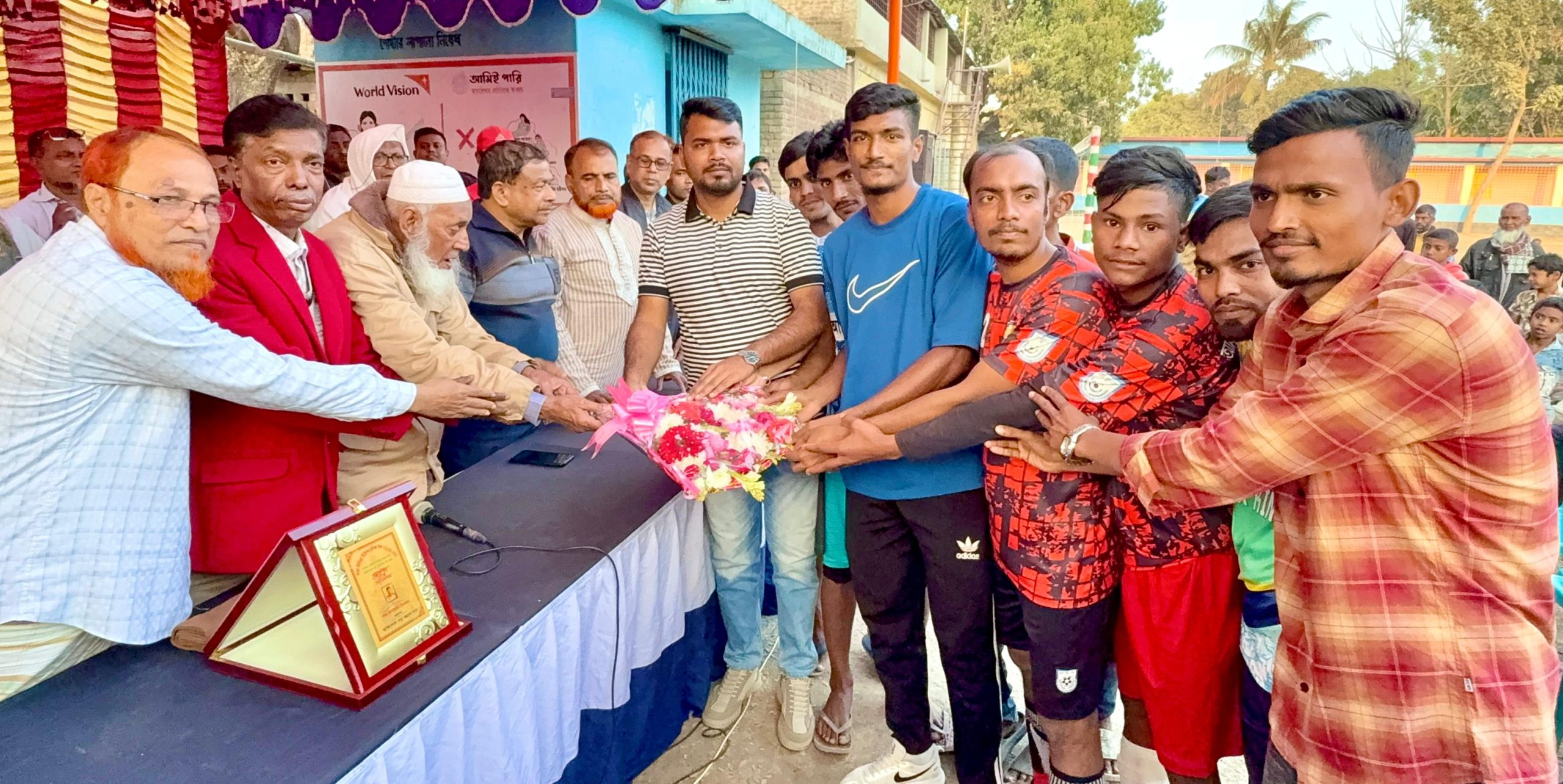 খেলা শেষে জাতীয় সংগীত পরিবেশনের মাধ্যমে নাগরিক সংবর্ধনা অনুষ্ঠানের আনুষ্ঠানিকতা শুরু হয়। পরে এলাকাবাসীর পক্ষ থেকে ফুলেল শুভেচ্ছা ও সম্মাননা ক্রেস্ট প্রদান করে তরুণ ফুটবলার মাশরাফি ইসলামকে সংবর্ধিত করা হয়।