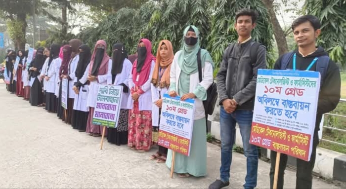 কর্মসূচিতে বক্তারা বলেন, “দীর্ঘদিন ধরে ১০ম গ্রেড বাস্তবায়নের দাবি জানিয়ে আসছি। টেকনোলজিস্ট ছাড়া কোনো চিকিৎসা সঠিকভাবে সম্পন্ন হয় না। স্বাস্থ্যসেবা ব্যবস্থায় আমাদের ভূমিকা অত্যন্ত গুরুত্বপূর্ণ। কিন্তু দীর্ঘদিনের বৈষম্যের কারণে নিয়োগ প্রক্রিয়াতেও নেতিবাচক প্রভাব পড়েছে। দাবি না মানা হলে কর্মসূচি চলমান থাকবে।”